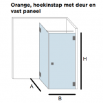 Hoekopstelling met douchedeur en vast paneel op maat type Orange