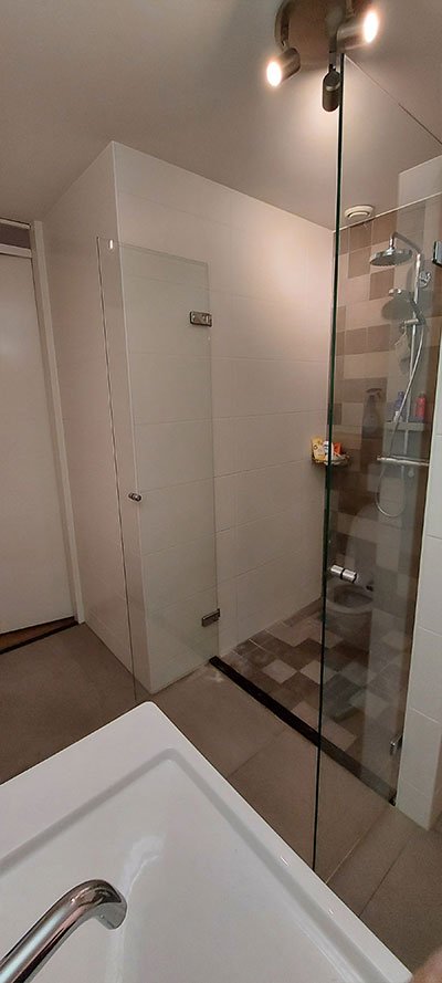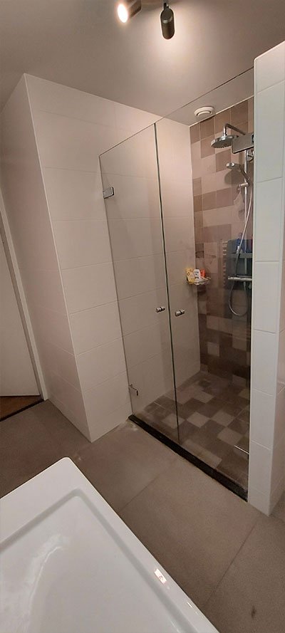 Douchedeuren die twee kanten op open gaan, dat is ideaal! Wij plaatsten deze douchedeuren van type Avignon.